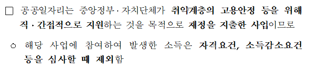 - 공공 일자리 참여자의 경우 기본적으로 안되지만 예외 조건 있음 (하기 참조)