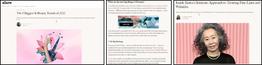 올해 2022년 4월 미국 얼루어 매거진에서 K 뷰티 특집으로 천연재료 한방화장품에 대해 다루었을 정도로 현재 국내 기능성 화장품 시장은 한방화장품이 거의 캐리하고 있다고 봐도 과언은 아닌셈입니다. (그중에서도 홍삼 화장품을 주목)