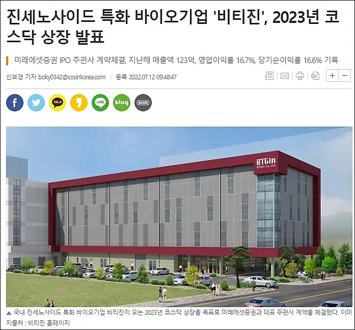 특히 고혼진에 이러한 해당 바이오 컨버전 기술을 제공한 비티진은 글로벌 바이오 기업을 목표로 미래에셋증권을 대표주관사로 코스닥 상장을 앞두고 있습니다.